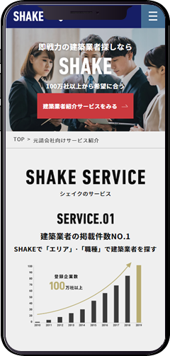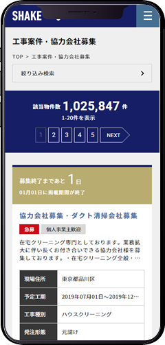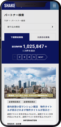 SHAKEでは多くの元請業者が協力業者を求めて検索しています。自社情報を登録することで、仕事を依頼したい元請業者に出会える確率が高まります